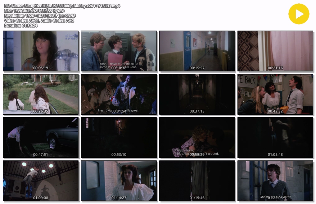 movie 영화 슬로터 하이 Slaughter 슬로터 하이.Slaughter High.1986.. person 자료*** calendar_today 2026.03.31 visibility 6,334 한글자막이 없습니다.여덟 명의 사람들이 폐교된 고등학교에서 열리는 10년 만의 동창회에 초대되는데, 장난이 잘못되어 얼굴에 흉터가 남은 옛 제자가 복수를 위해 그곳에 나타난다. 다운로드 2개 파일 folder_zip Slaughter.High.1986.1080p.BluRay.x264-[YTS.LT].mp4 1.4 GB download folder_zip Slaughter.High.1986.1080p.BluRay.x264-[YTS.LT].srt download