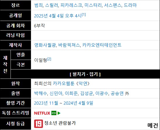 tv 드라마 악연 1화 6화 [N] 악연. 完 (1화~6화, 250404 공개) 박해수, 신민아 person 메건*** calendar_today 2026.03.31 visibility 6,339 다운로드 6개 파일 folder_zip 악연. 1화 (파일, 제목, 스샷 도용 금지!! 작성자 메건).mkv 6.6 GB download folder_zip 악연. 2화 (파일, 제목, 스샷 도용 금지!! 작성자 메건).mkv download folder_zip 악연. 3화 (파일, 제목, 스샷 도용 금지!! 작성자 메건).mkv download folder_zip 악연. 4화 (파일, 제목, 스샷 도용 금지!! 작성자 메건).mkv download folder_zip 악연. 5화 (파일, 제목, 스샷 도용 금지!! 작성자 메건).mkv download folder_zip 악연. 6화 (파일, 제목, 스샷 도용 금지!! 작성자 메건).mkv download