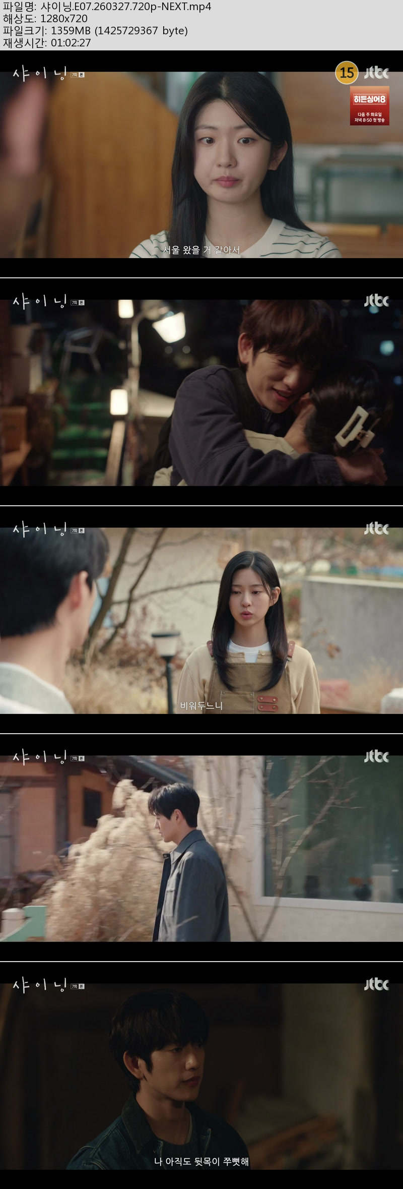 tv 드라마 샤이닝 8회 이번주 샤이닝.7~8회(이번주 방송).260327.720p-NEXT person kk*** calendar_today 2026.03.31 visibility 4,037 다운로드 2개 파일 folder_zip 샤이닝.E07.260327.720p-NEXT.mp4 2.7 GB download folder_zip 샤이닝.E08.260327.720p-NEXT.mp4 download