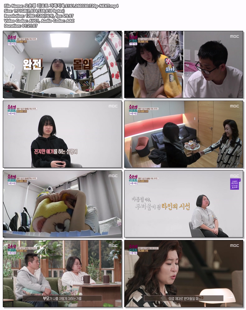 play_circle 동영상 오은영 리포트 가족지옥 오은영 리포트 가족지옥.E161.260330.720p-NEXT person yo*** calendar_today 2026.03.31 visibility 7,219 다운로드 1개 파일 folder_zip 오은영 리포트 가족지옥.E161.260330.720p-NEXT.mp4 1.7 GB download