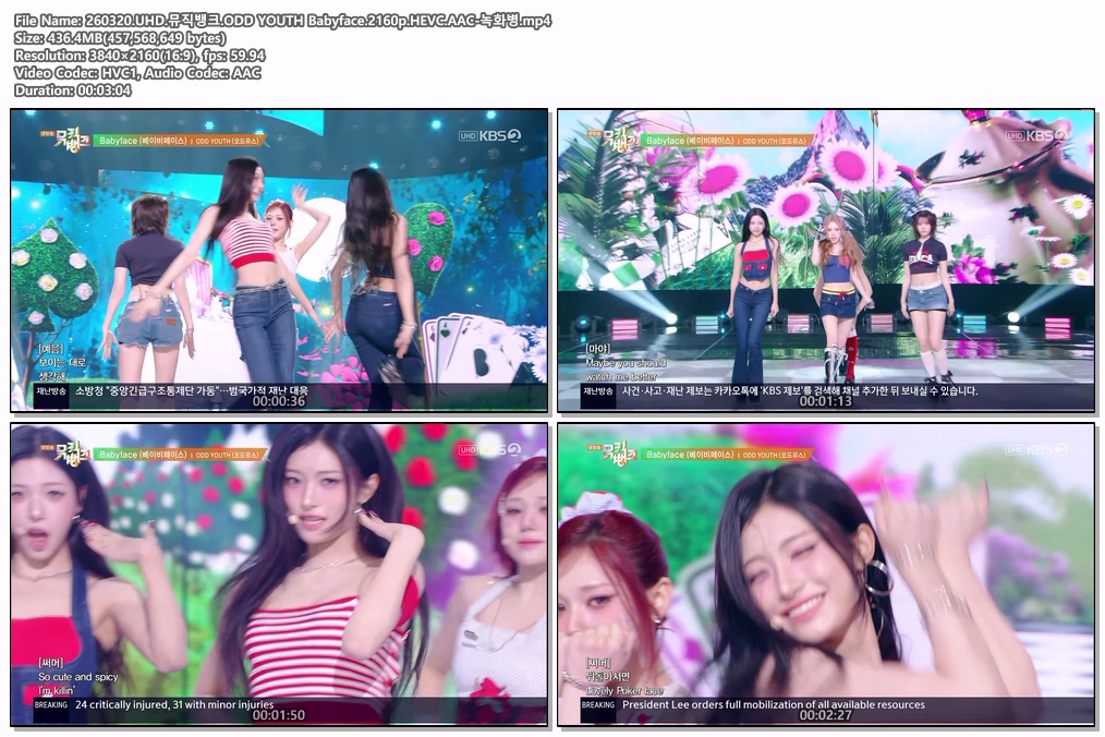 play_circle 동영상 뮤직뱅크 걸그룹 AtHeart 260320.UHD.뮤직뱅크.걸그룹 person he*** calendar_today 2026.03.31 visibility 3,987 다운로드 6개 파일 folder_zip 260320.UHD.뮤직뱅크.AtHeart Butterfly Doors.2160p.HEVC.AAC-녹화병.mp4 2.8 GB download folder_zip 260320.UHD.뮤직뱅크.H1-KEY 나의 첫사랑에게.2160p.HEVC.AAC-녹화병.mp4 download folder_zip 260320.UHD.뮤직뱅크.ODD YOUTH Babyface.2160p.HEVC.AAC-녹화병.mp4 download folder_zip 260320.UHD.뮤직뱅크.YENA Catch Catch.2160p.HEVC.AAC-녹화병.mp4 download folder_zip 260320.UHD.뮤직뱅크.cosmosy Chance ~ 사랑이라 말하기 전에~.2160p.HEVC.AAC-녹화병.mp4 download folder_zip 260320.UHD.뮤직뱅크.전 출연진 엔딩.2160p.HEVC.AAC-녹화병.mp4 download