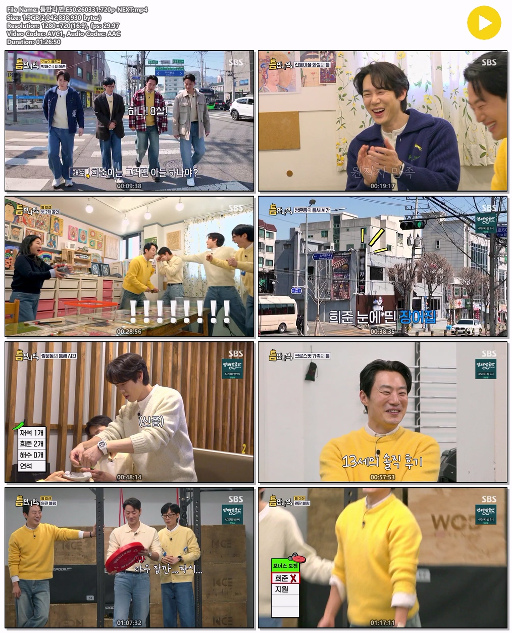 play_circle 동영상 틈만나면 E50 NEXT 틈만나면.E50.260331.720p-NEXT person tm*** calendar_today 2026.03.31 visibility 4,244 다운로드 1개 파일 folder_zip 틈만나면.E50.260331.720p-NEXT.mp4 1.9 GB download