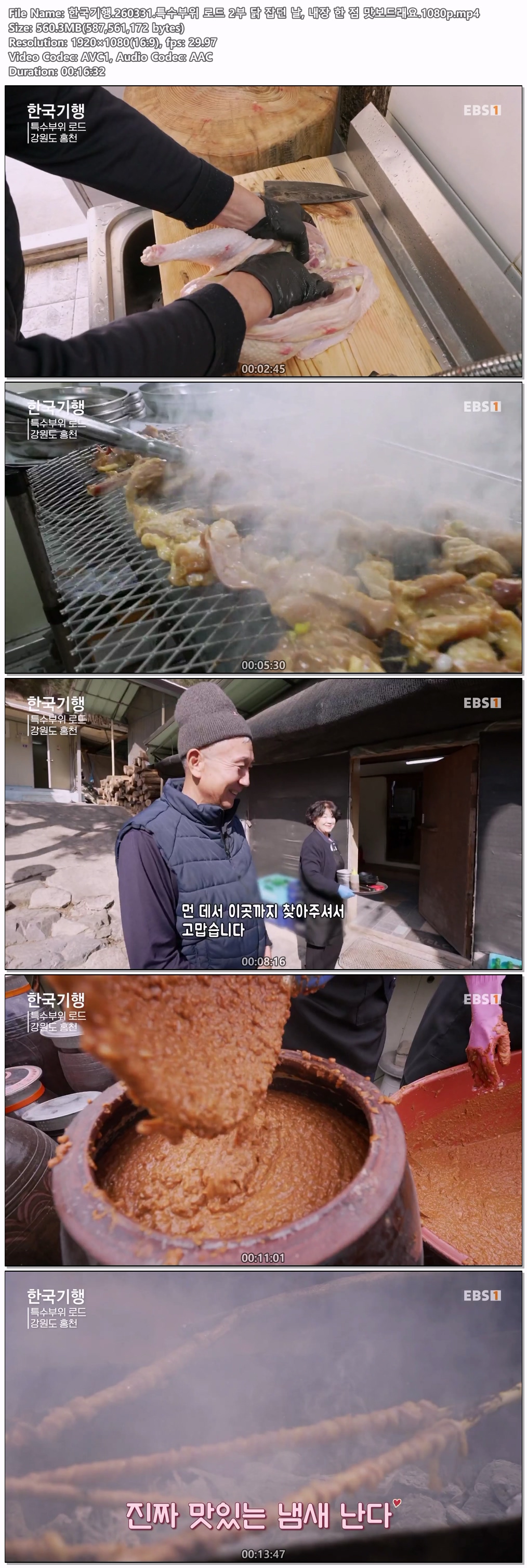 play_circle 동영상 한국기행 특수부위 로드 한국기행.260331.특수부위 로드 2부 닭 잡던 날, 내장 한 점 맛보드래요.1080p person iq*** calendar_today 2026.03.31 visibility 7,210 다운로드 1개 파일 folder_zip 한국기행.260331.특수부위 로드 2부 닭 잡던 날, 내장 한 점 맛보드래요.1080p.mp4 560 MB download