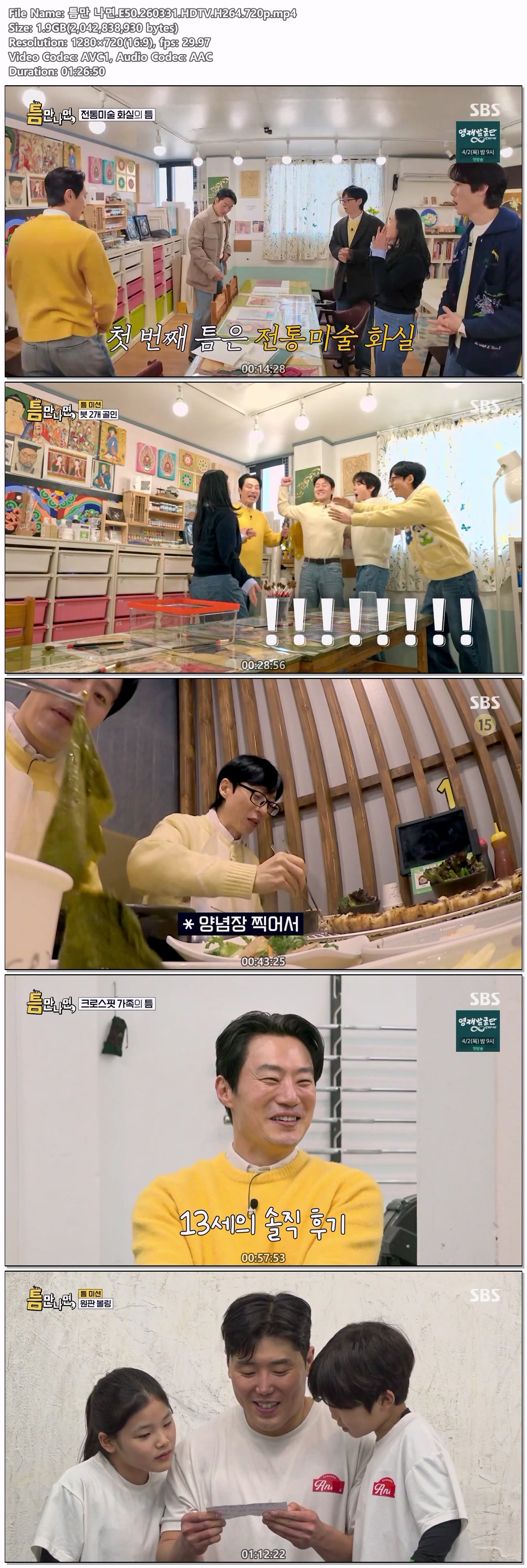 play_circle 동영상 틈만 나면 E50 틈만 나면.E50.260331.HDTV.H264.720p person iq*** calendar_today 2026.03.31 visibility 4,430 다운로드 1개 파일 folder_zip 틈만 나면.E50.260331.HDTV.H264.720p.mp4 1.9 GB download