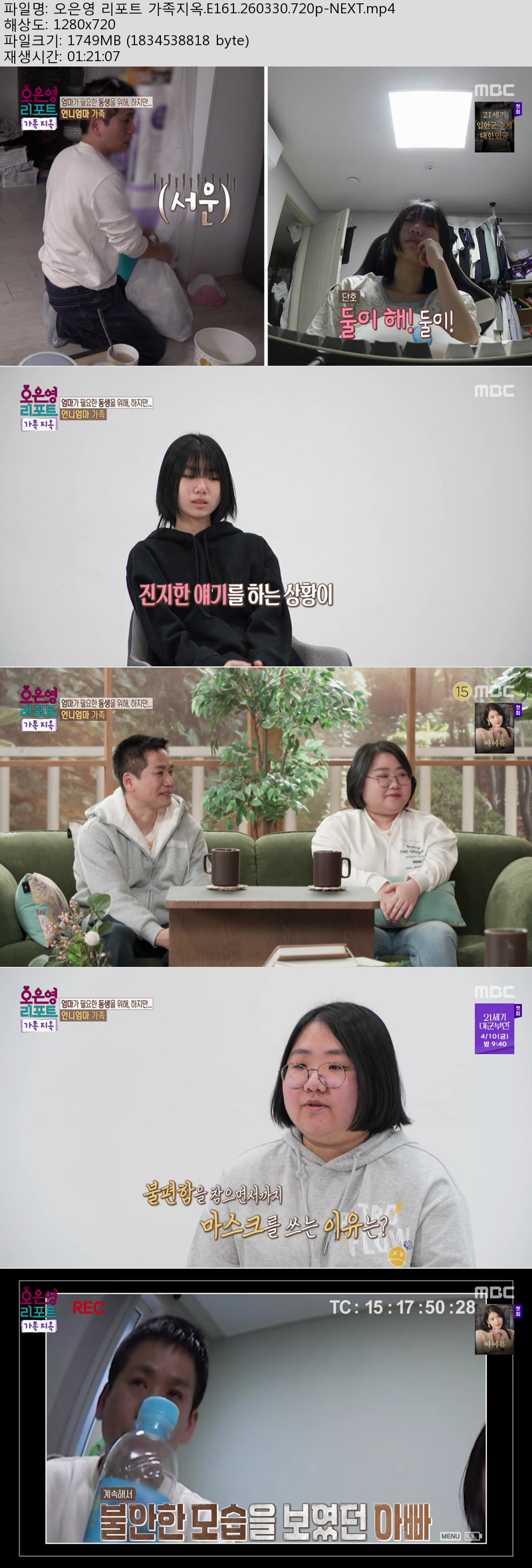 play_circle 동영상 오은영 리포트 가족지옥 오은영 리포트 가족지옥.E161.260330.720p-NEXT person 켓츠*** calendar_today 2026.03.31 visibility 7,155 다운로드 1개 파일 folder_zip 오은영 리포트 가족지옥.E161.260330.720p-NEXT.mp4 1.7 GB download