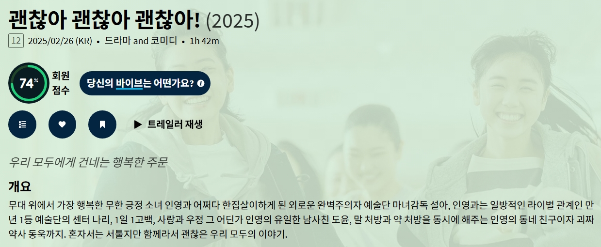 movie 영화 괜찮아 우리 모두에게 괜찮아 괜찮아 괜찮아! (2025) 우리 모두에게 건네는 행복한 주문 person gg*** calendar_today 2026.04.10 visibility 4,569 다운로드 1개 파일 folder_zip 괜찮아 괜찮아 괜찮아! (2025).mkv 1.3 GB download
