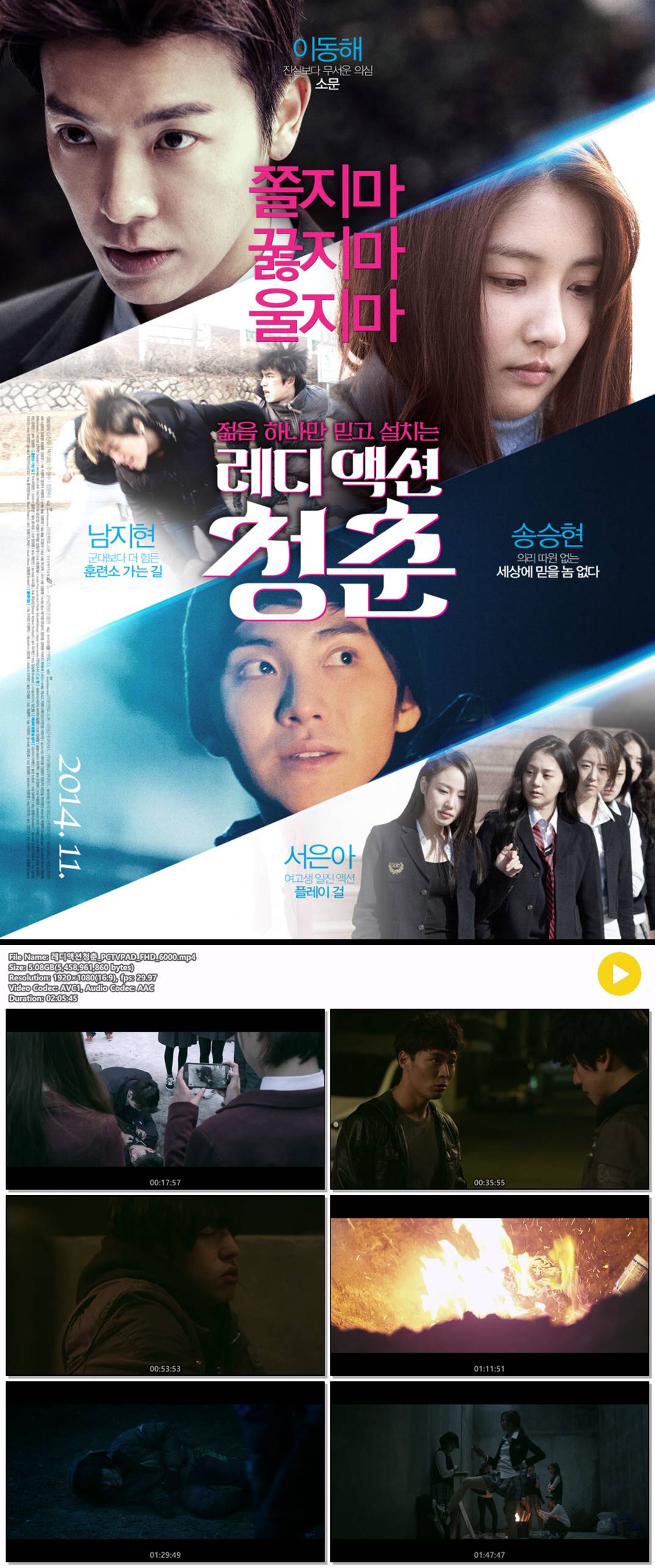 movie 영화 레디 액션 청춘 [레디 액션 청춘] 남지현X이동해 쫄지마 꿇지마 울지마 person kt*** calendar_today 2026.04.10 visibility 4,880 다운로드 1개 파일 folder_zip 레디액션청춘_PCTVPAD_FHD_6000.mp4 5.1 GB download