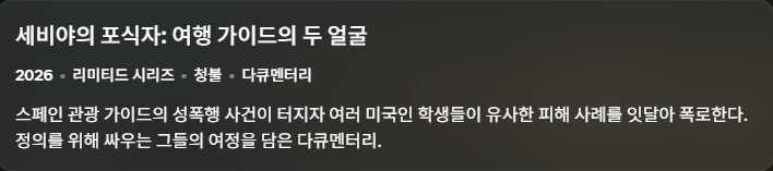 play_circle 동영상 다큐 세비야의 포식자 [다큐-19] 세비야의 포식자-여행 가이드의 두 얼굴.3부작완결.2026.1080p.한글자막 person 정용*** calendar_today 2026.04.10 visibility 7,585 다운로드 6개 파일 folder_zip The.Predator.of.Seville.S01E01.1080p.WEB.h264-EDITH.mkv 5.5 GB download folder_zip The.Predator.of.Seville.S01E01.1080p.WEB.h264-EDITH.srt download folder_zip The.Predator.of.Seville.S01E02.1080p.WEB.h264-EDITH.mkv download folder_zip The.Predator.of.Seville.S01E02.1080p.WEB.h264-EDITH.srt download folder_zip The.Predator.of.Seville.S01E03.1080p.WEB.h264-EDITH.mkv download folder_zip The.Predator.of.Seville.S01E03.1080p.WEB.h264-EDITH.srt download