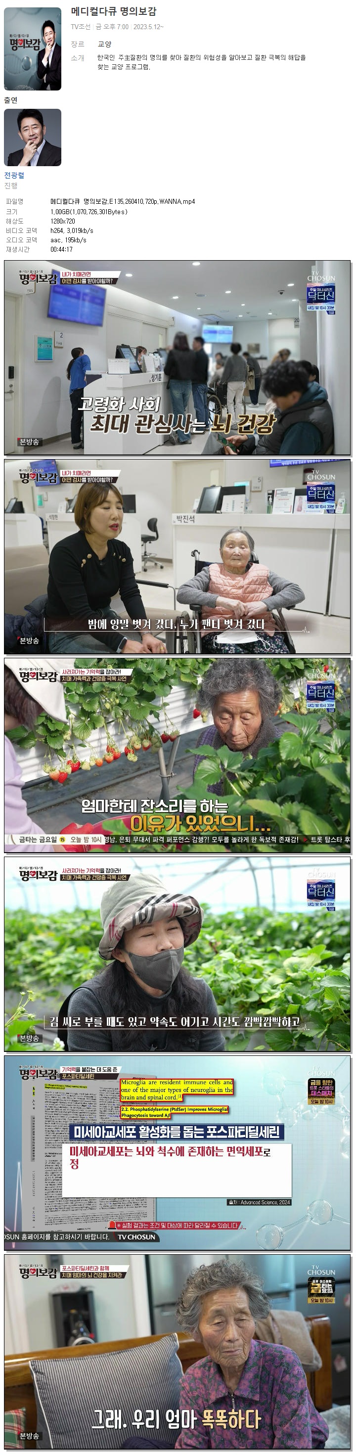 play_circle 동영상 메디컬다큐 명의보감 E135 메디컬다큐 명의보감.E135.260410.720p.WANNA person 바오*** calendar_today 2026.04.10 visibility 4,588 다운로드 1개 파일 folder_zip 메디컬다큐 명의보감.E135.260410.720p.WANNA.mp4 1,021 MB download