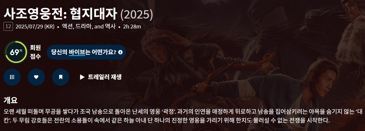 movie 영화 사조영웅전 협지대자 중원의 사조영웅전: 협지대자 (2025) 중원의 전설 곽정, 난세의 영웅이 되어 대칸의 야욕을 꺾다 person gg*** calendar_today 2026.04.11 visibility 6,708 다운로드 1개 파일 folder_zip 사조영웅전- 협지대자.mkv 3.1 GB download