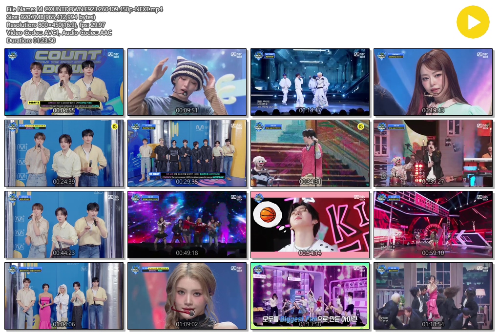play_circle 동영상 COUNTDOWN E923 450p M COUNTDOWN.E923.260409.450p-NEXT person se*** calendar_today 2026.04.11 visibility 4,538 다운로드 1개 파일 folder_zip M COUNTDOWN.E923.260409.450p-NEXT.mp4 921 MB download