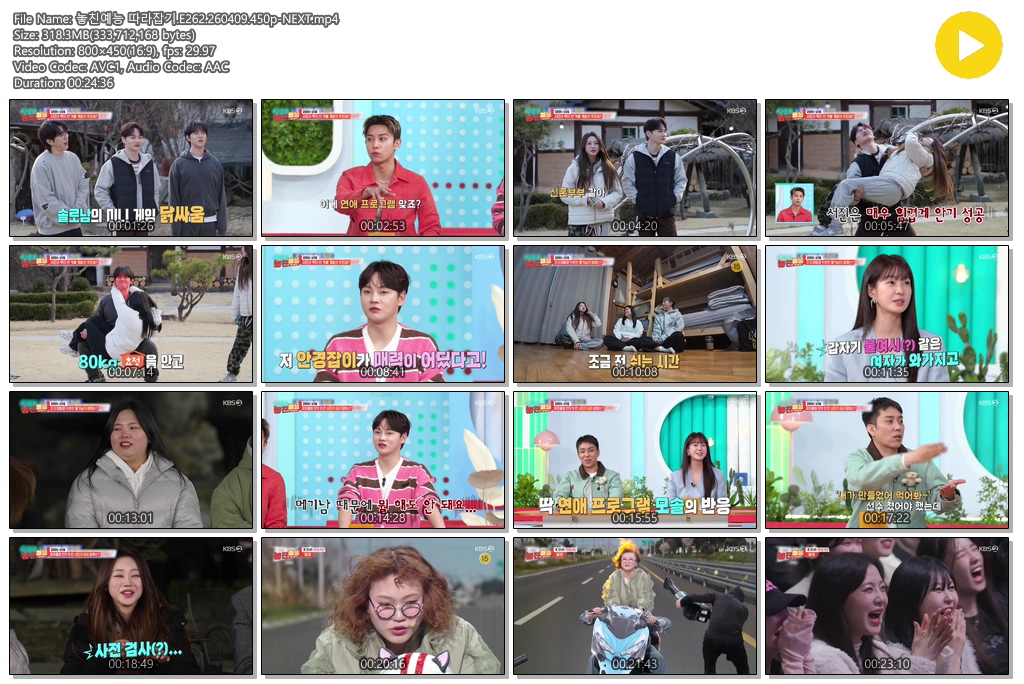 play_circle 동영상 놓친예능 따라잡기 E262 놓친예능 따라잡기.E262.260409.450p-NEXT person se*** calendar_today 2026.04.11 visibility 3,029 다운로드 1개 파일 folder_zip 놓친예능 따라잡기.E262.260409.450p-NEXT.mp4 318 MB download