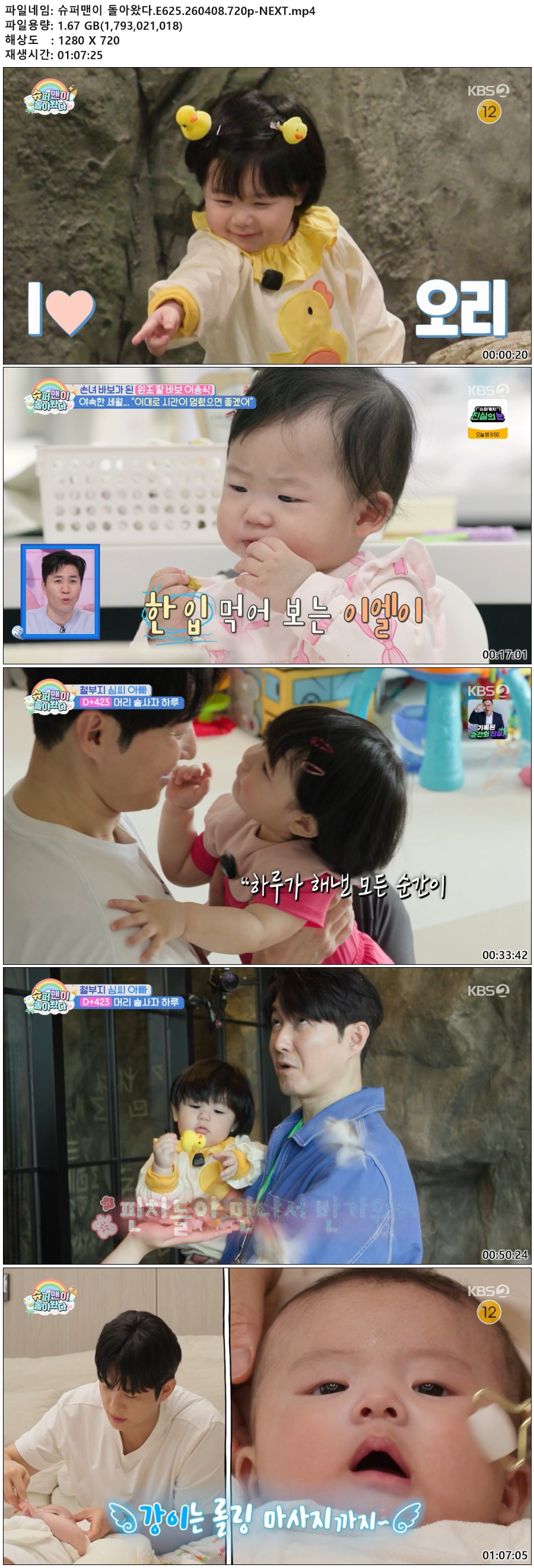 play_circle 동영상 슈퍼맨이 돌아왔다 E625 슈퍼맨이 돌아왔다.E625.260408.720p-NEXT person 환혼*** calendar_today 2026.04.11 visibility 3,006 다운로드 1개 파일 folder_zip 슈퍼맨이 돌아왔다.E625.260408.720p-NEXT.mp4 1.7 GB download
