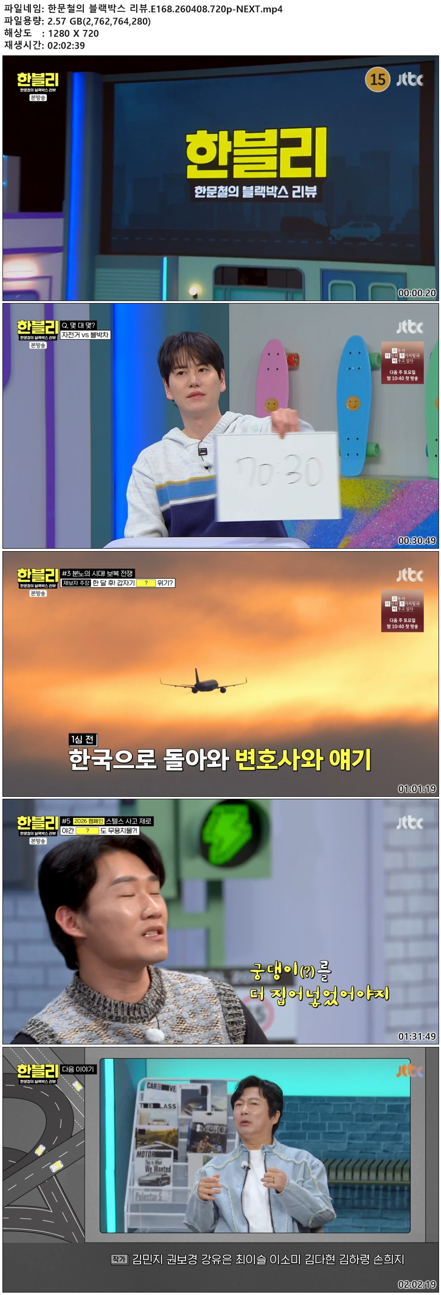 play_circle 동영상 한문철의 블랙박스 리뷰 한문철의 블랙박스 리뷰.E168.260408.720p-NEXT person qk*** calendar_today 2026.04.11 visibility 5,808 다운로드 1개 파일 folder_zip 한문철의 블랙박스 리뷰.E168.260408.720p-NEXT.mp4 2.6 GB download