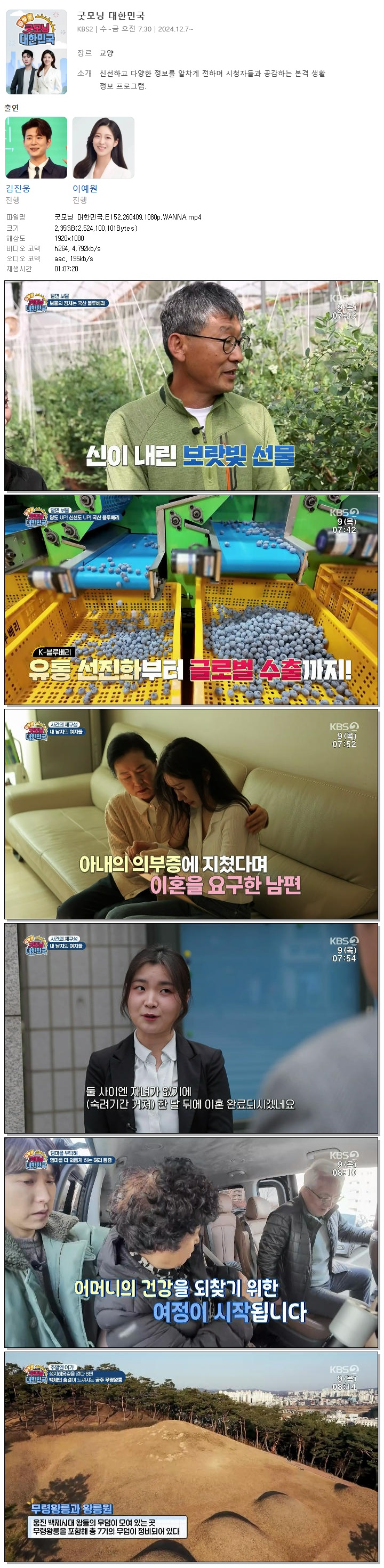 play_circle 동영상 굿모닝 대한민국 E152 굿모닝 대한민국.E152.260409.1080p.WANNA person 홀리*** calendar_today 2026.04.11 visibility 7,779 다운로드 1개 파일 folder_zip 굿모닝 대한민국.E152.260409.1080p.WANNA.mp4 2.4 GB download