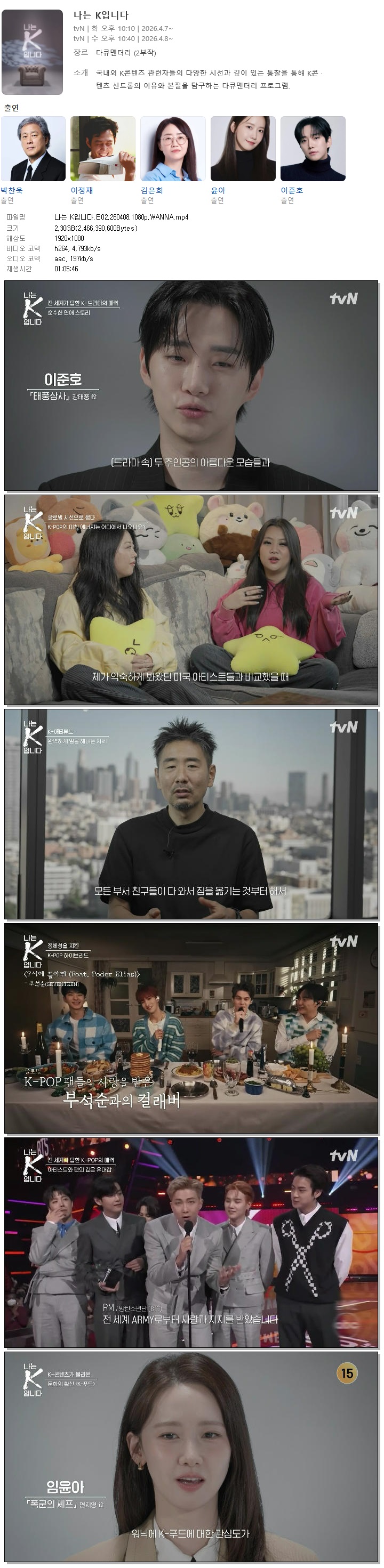 play_circle 동영상 나는 K입니다 E02 나는 K입니다.E02.260408.1080p.WANNA person 홀리*** calendar_today 2026.04.11 visibility 4,443 다운로드 1개 파일 folder_zip 나는 K입니다.E02.260408.1080p.WANNA.mp4 2.3 GB download