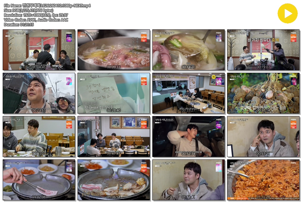 play_circle 동영상 전현무계획3 E26 NEXT 전현무계획3.E26.260410.1080p-NEXT person se*** calendar_today 2026.04.11 visibility 6,237 다운로드 1개 파일 folder_zip 전현무계획3.E26.260410.1080p-NEXT.mp4 3.1 GB download