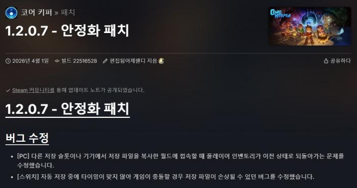 26년 4월 1일 업데이트 버전 (안정화 패치)