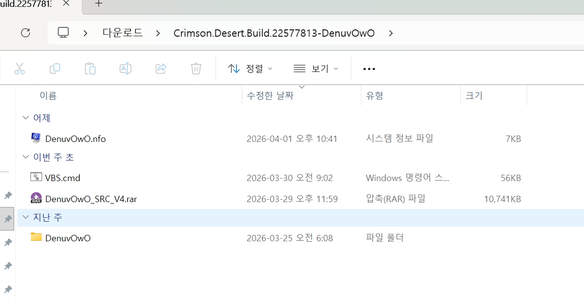 sports_esports 게임 붉은사막 4월1일자패치파일만 ezc 붉은사막 1.01.03 4월1일자패치파일만 person jm*** calendar_today 2026.04.11 visibility 4,353 0000입니다 반드시 반디집으로만 압축해제하세요. 패치하는법이 애매하게 까다롭습니다. 패치파일을 설치하고 크랙을 다시 복사해서 붙혀넣기하셔야되요. 그리고 설정법대로 처음부터 다시설정을하셔야지 게임이됨니다. 다운로드 2개 파일 folder_zip 03.7z.ezc 211 MB download folder_zip CrimsonBuild.22577813.7z.ezc download