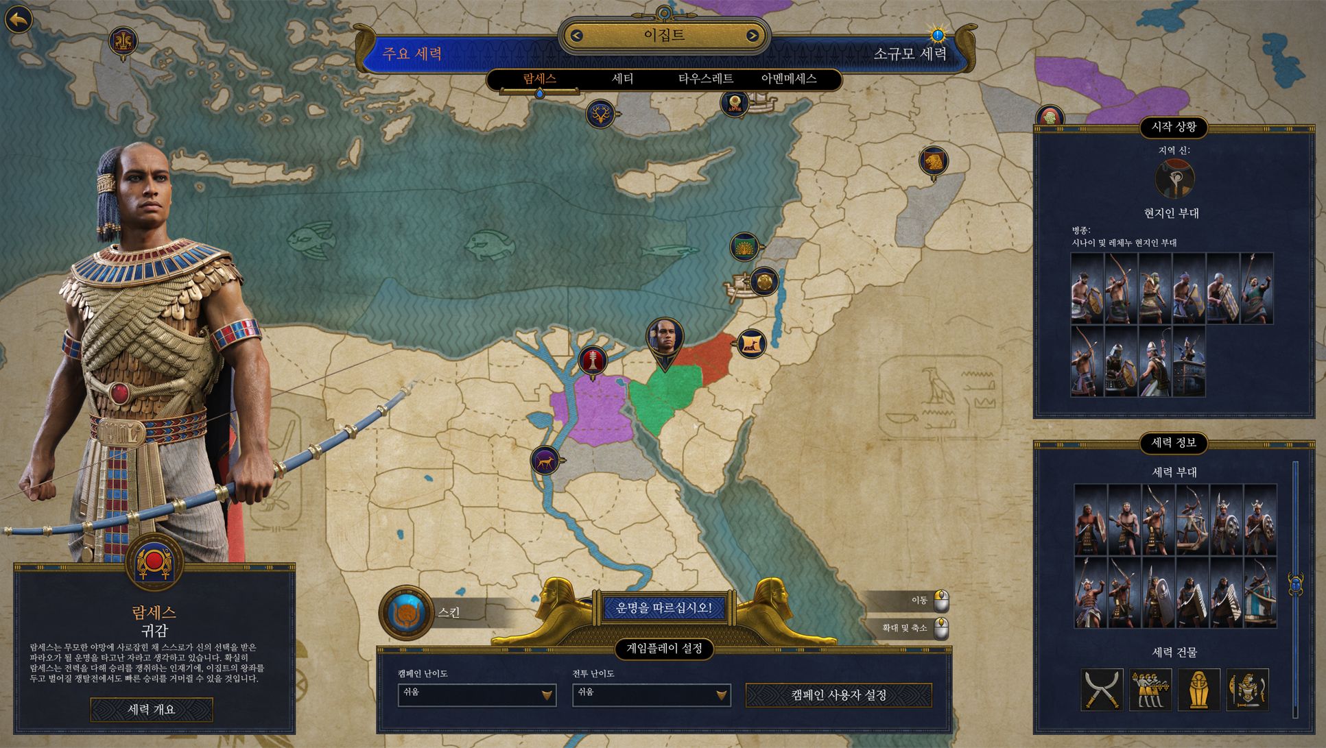 토탈워 파라오 왕조 v2.1.6(한글무설치)입니다~~ 1번 암호화파일만 EasyCrypt로 복호화하셔서 반디집 최신버전으로 같이 압축푸시고 실행해주시면 됩니다~~(암호:0000) 무설치게임 실행시 1.무설치게임 필수유틸 설치(포털에서 다운), 2.폴더에 한글이 없이 영어로 다 바꾸셔서 플레이 해야 한다는 거 다 아시죠~~ 저는 실행이 잘 되어서 올리는데요 혹시 시스템상 특성으로 인하여 실행이 안되시는 분이 있으실 수 있으니까요 참조하셔서 다운받으시기 바라겠습니다~~ 그럼 재밌게들 하세요~~