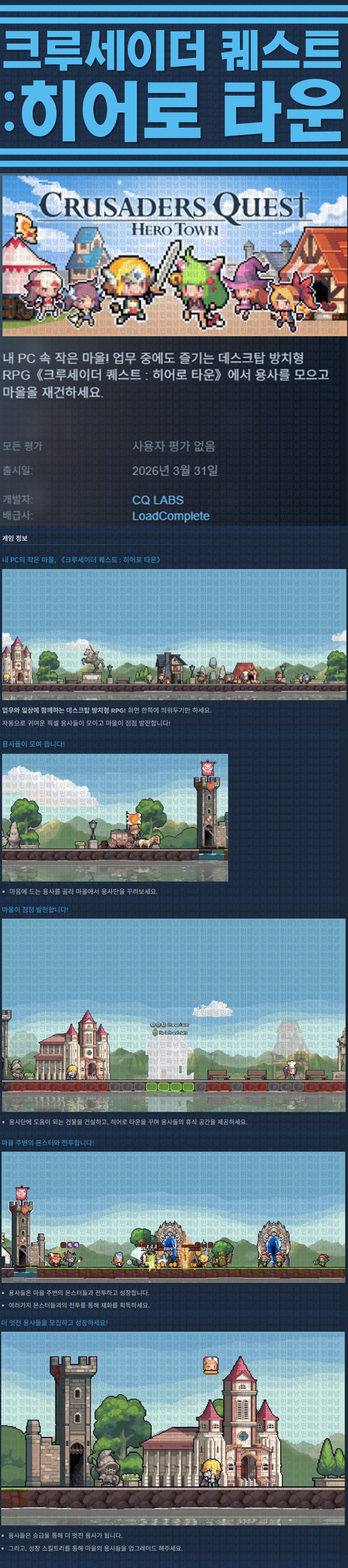sports_esports 게임 한글무설치 크루세이더 퀘스트 [한글무설치] 크루세이더 퀘스트 히어로 타운 v1.05 person ze*** calendar_today 2026.04.11 visibility 3,700 실행CQ Hero Town.exe26.04.05 update 이지크립트:0000 다운로드 1개 파일 folder_zip Crusaders Quest Hero Town.zip.ezc 116 MB download