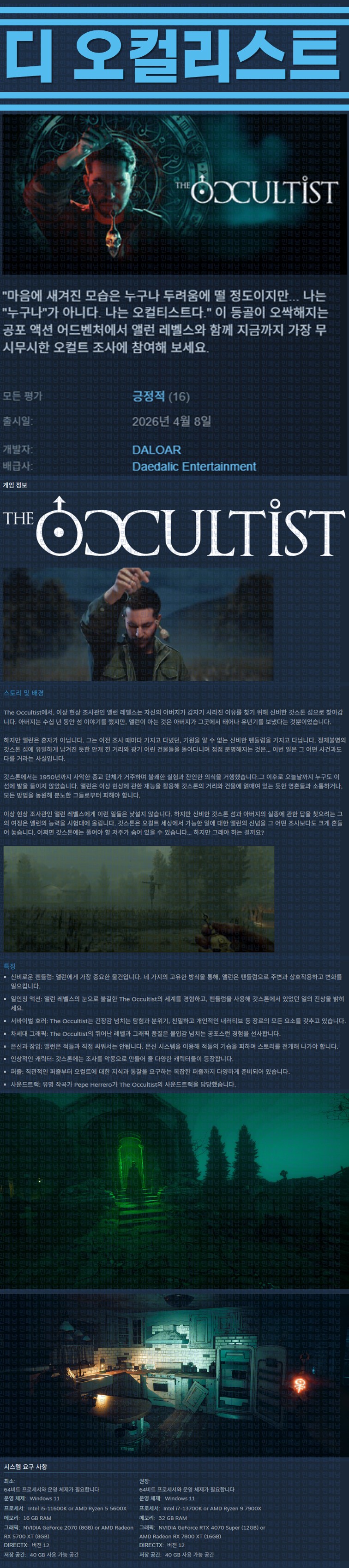 sports_esports 게임 한글무설치 오컬리스트 Occultist [한글무설치] 디 오컬리스트 v1.0.0.0 person ze*** calendar_today 2026.04.11 visibility 6,077 실행The_Occultist.exe26.04.08 신작 이지크립트:0000 다운로드 6개 파일 folder_zip The Occultist.7z.001.ezc 17.0 GB download folder_zip The Occultist.7z.002 download folder_zip The Occultist.7z.003 download folder_zip The Occultist.7z.004 download folder_zip The Occultist.7z.005 download folder_zip The Occultist.7z.006 download