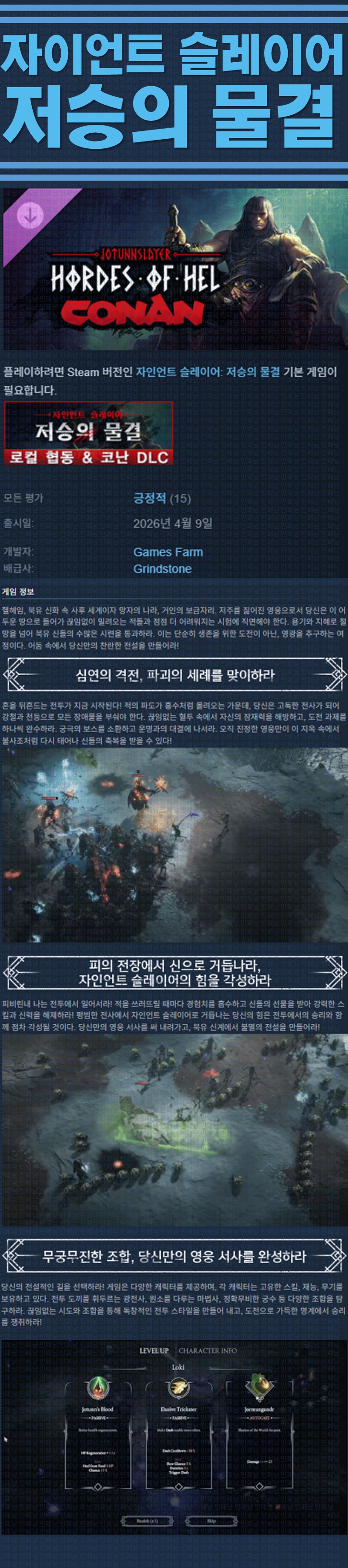sports_esports 게임 한글무설치 자이언트 슬레이어 [한글무설치] 자이언트 슬레이어 저승의 물결 v1.2.0.93949 person ze*** calendar_today 2026.04.11 visibility 6,795 실행Jotunnslayer.exe 26.04.09 신규 DLC-Conan 이지크립트:0000 다운로드 4개 파일 folder_zip Jotunnslayer Hordes of Hel Conan.7z.001.ezc 11.7 GB download folder_zip Jotunnslayer Hordes of Hel Conan.7z.002 download folder_zip Jotunnslayer Hordes of Hel Conan.7z.003 download folder_zip Jotunnslayer Hordes of Hel Conan.7z.004 download