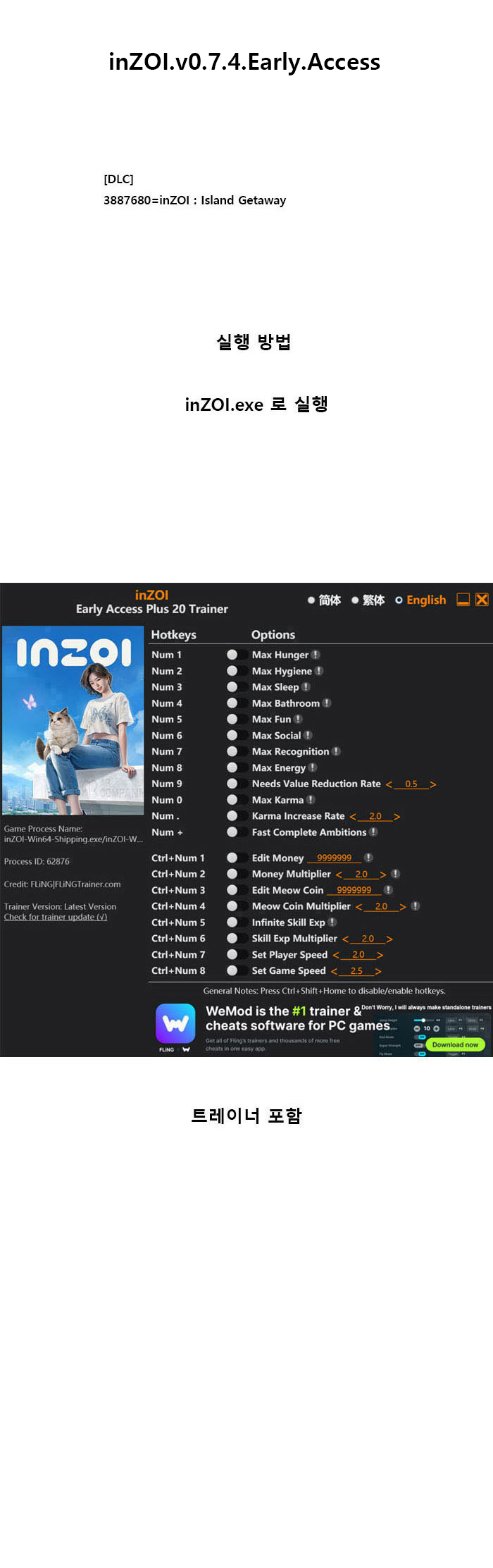 sports_esports 게임 무설치 인조이 inZOI [한글 무설치]인조이 V0.7.4 person wo*** calendar_today 2026.04.11 visibility 5,033 다운로드 6개 파일 folder_zip inZOI.7z.001.ezc 30.0 GB download folder_zip inZOI.7z.002 download folder_zip inZOI.7z.003 download folder_zip inZOI.7z.004 download folder_zip inZOI.7z.005 download folder_zip inZOI.7z.006 download