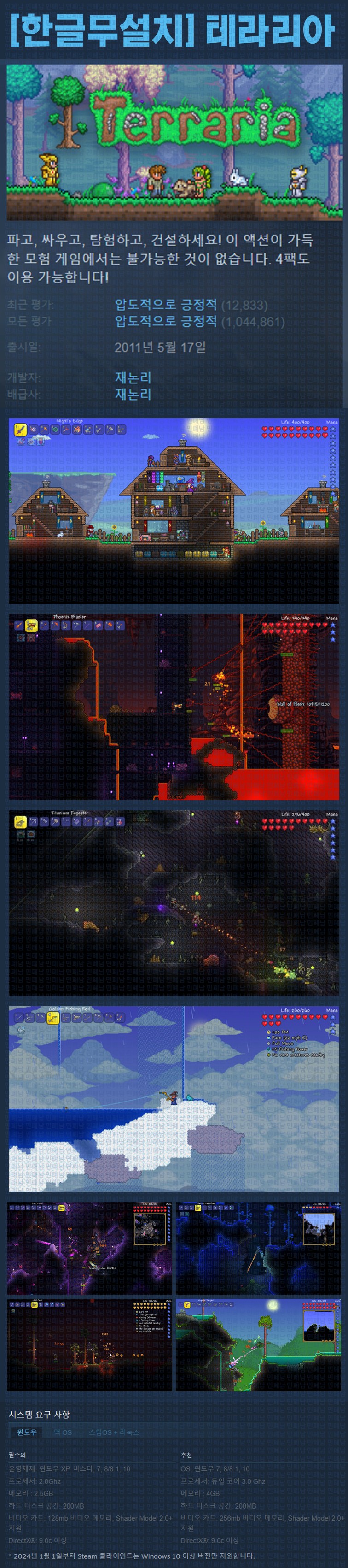 sports_esports 게임 한글무설치 테라리아 Terraria [한글무설치] 테라리아 v1.4.5.6 person ze*** calendar_today 2026.04.11 visibility 7,519 실행Terraria.exe26.03.09 update 이지크립트:0000 다운로드 1개 파일 folder_zip Terraria Build.22266454.zip.ezc 632 MB download