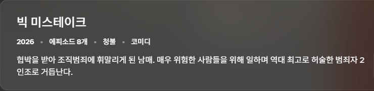 tv 드라마 미스테이크 1시즌 8화 [ 빅 미스테이크 ] 1시즌 1-8화 [완] 1080p 고화질 한글자막 person fd*** calendar_today 2026.04.11 visibility 4,226 다운로드 16개 파일 folder_zip Big.Mistakes.S01E01.1080p.HEVC.x265-MeGusta.mkv 3.1 GB download folder_zip Big.Mistakes.S01E01.1080p.HEVC.x265-MeGusta.srt download folder_zip Big.Mistakes.S01E02.1080p.HEVC.x265-MeGusta.mkv download folder_zip Big.Mistakes.S01E02.1080p.HEVC.x265-MeGusta.srt download folder_zip Big.Mistakes.S01E03.1080p.HEVC.x265-MeGusta.mkv download folder_zip Big.Mistakes.S01E03.1080p.HEVC.x265-MeGusta.srt download folder_zip Big.Mistakes.S01E04.1080p.HEVC.x265-MeGusta.mkv download folder_zip Big.Mistakes.S01E04.1080p.HEVC.x265-MeGusta.srt download folder_zip Big.Mistakes.S01E05.1080p.HEVC.x265-MeGusta.mkv download folder_zip Big.Mistakes.S01E05.1080p.HEVC.x265-MeGusta.srt download folder_zip Big.Mistakes.S01E06.1080p.HEVC.x265-MeGusta.mkv download folder_zip Big.Mistakes.S01E06.1080p.HEVC.x265-MeGusta.srt download folder_zip Big.Mistakes.S01E07.1080p.HEVC.x265-MeGusta.mkv download folder_zip Big.Mistakes.S01E07.1080p.HEVC.x265-MeGusta.srt download folder_zip Big.Mistakes.S01E08.1080p.HEVC.x265-MeGusta.mkv download folder_zip Big.Mistakes.S01E08.1080p.HEVC.x265-MeGusta.srt download