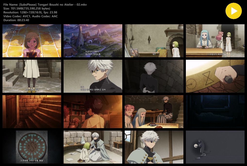 auto_awesome 애니 고깔모자의 아틀리에 1280x720 고깔모자의 아틀리에 (2026) - 02 (1280x720) person zz*** calendar_today 2026.04.11 visibility 3,572 다운로드 2개 파일 folder_zip [SubsPlease] Tongari Boushi no Atelier - 02.mkv 702 MB download folder_zip [SubsPlease] Tongari Boushi no Atelier - 02.srt download