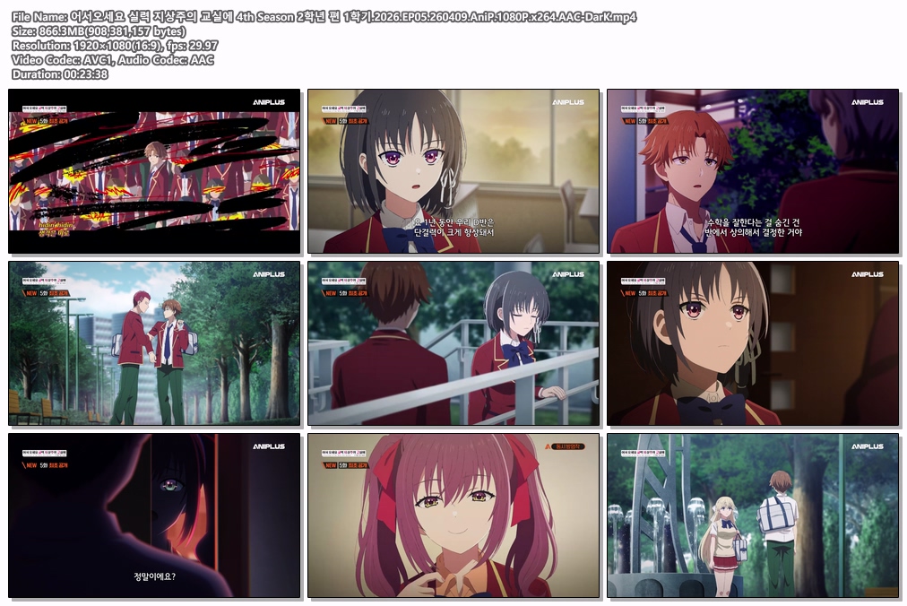 auto_awesome 애니 어서오세요 실력 지상주의 어서오세요 실력 지상주의 교실에 4th Season 2학년 편 1학기.2026.EP05.260409.AniP.1080P.x264.AAC-DarK person da*** calendar_today 2026.04.11 visibility 5,022 다운로드 1개 파일 folder_zip 어서오세요 실력 지상주의 교실에 4th Season 2학년 편 1학기.2026.EP05.260409.AniP.1080P.x264.AAC-DarK.mp4 866 MB download
