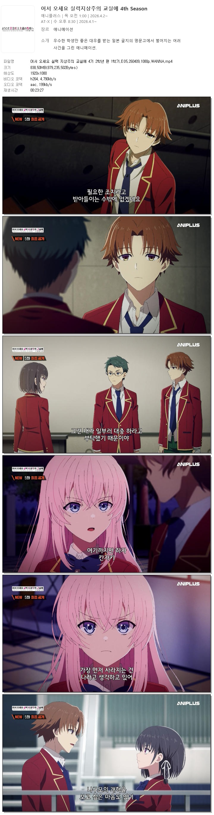 auto_awesome 애니 어서 오세요 실력 어서 오세요 실력 지상주의 교실에 4기 2학년 편 1학기.E05.260409.1080p.WANNA person 홀리*** calendar_today 2026.04.11 visibility 7,190 다운로드 1개 파일 folder_zip 어서 오세요 실력 지상주의 교실에 4기 2학년 편 1학기.E05.260409.1080p.WANNA.mp4 839 MB download