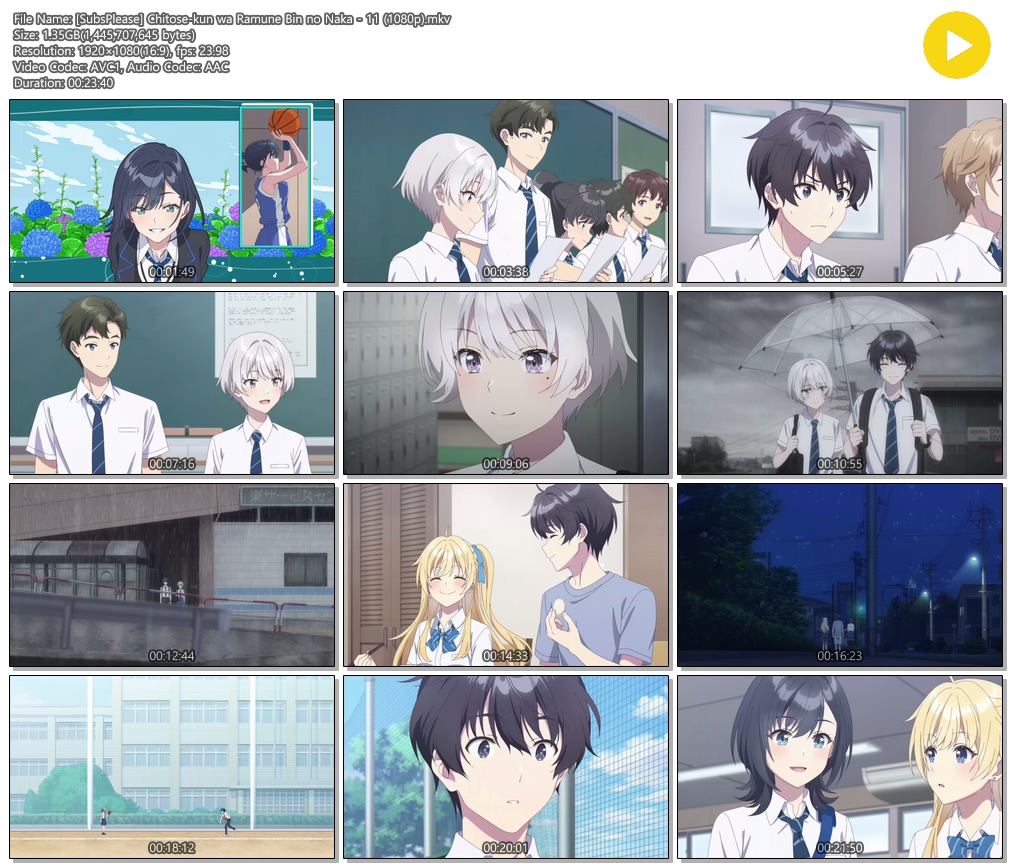 auto_awesome 애니 SubsPlease 치토세 군은 [SubsPlease] 치토세 군은 라무네 병 속에 - 11 (1920x1080) person 에어*** calendar_today 2026.04.11 visibility 3,315 다운로드 2개 파일 folder_zip [SubsPlease] Chitose-kun wa Ramune Bin no Naka - 11 (1080p).mkv 1.3 GB download folder_zip [SubsPlease] Chitose-kun wa Ramune Bin no Naka - 11 (1080p).smi download