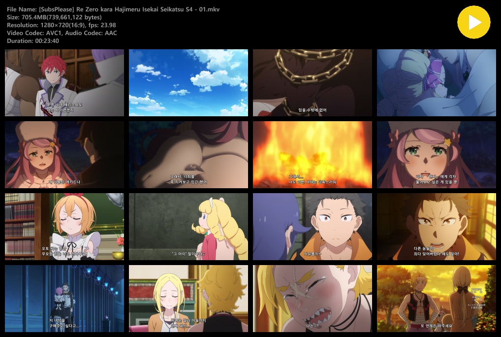 auto_awesome 애니 제로부터 시작하는 이세계 Re 제로부터 시작하는 이세계 생활 4기 (2026) - 01 (1280x720) person zz*** calendar_today 2026.04.11 visibility 4,409 다운로드 2개 파일 folder_zip [SubsPlease] Re Zero kara Hajimeru Isekai Seikatsu S4 - 01.mkv 705 MB download folder_zip [SubsPlease] Re Zero kara Hajimeru Isekai Seikatsu S4 - 01.srt download