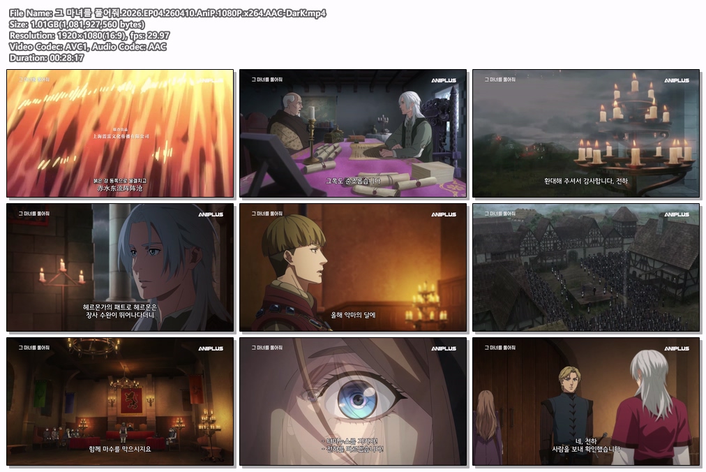 auto_awesome 애니 마녀를 풀어줘 EP04 그 마녀를 풀어줘.2026.EP04.260410.AniP.1080P.x264.AAC-DarK person da*** calendar_today 2026.04.11 visibility 6,098 다운로드 1개 파일 folder_zip 그 마녀를 풀어줘.2026.EP04.260410.AniP.1080P.x264.AAC-DarK.mp4 1.0 GB download