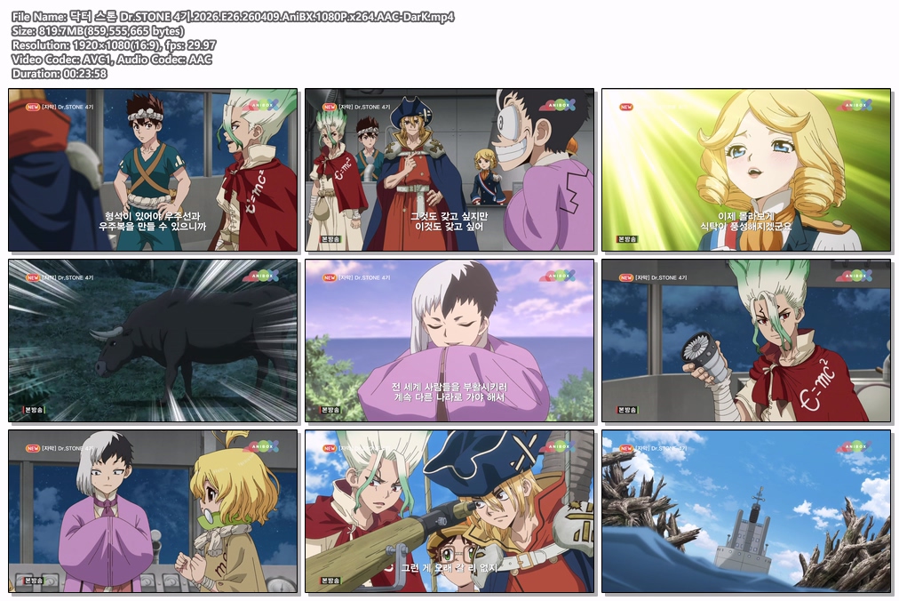auto_awesome 애니 닥터 스톤 STONE 닥터 스톤 Dr.STONE 4기.2026.E26.260409.AniBX.1080P.x264.AAC-DarK person da*** calendar_today 2026.04.11 visibility 6,252 다운로드 1개 파일 folder_zip 닥터 스톤 Dr.STONE 4기.2026.E26.260409.AniBX.1080P.x264.AAC-DarK.mp4 820 MB download