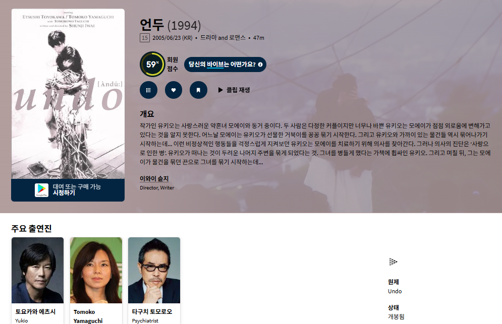 movie 영화 큐레이터 러브레터 감독 [큐레이터] 러브레터 감독, 이와이 슌지 [언두.. person ru*** calendar_today 2026.04.11 visibility 4,229 다운로드 2개 파일 folder_zip Undo.1994.1080p.mp4 811 MB download folder_zip Undo.1994.1080p.smi download