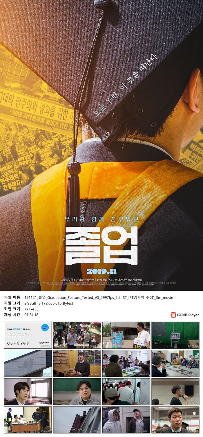 movie 영화 졸업 오늘 우린 [졸업]오늘 우린 이곳을 떠난다 우리가 함께 꿈꾸었던 졸업 person im*** calendar_today 2026.04.11 visibility 5,097 다운로드 1개 파일 folder_zip 191121_졸업_Graduation_Feature_Texted_VS_2997fps_2ch ST_IPTV(자막 수정)_3m_movie.mp4 3.0 GB download