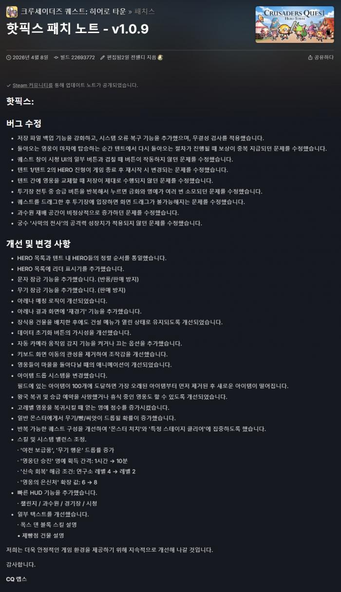 26년 4월 8일 v1.09 업데이트 핫픽스 버전