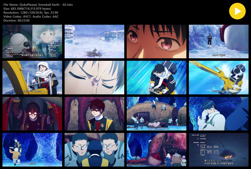 auto_awesome 애니 스노우볼 어스 1280x720 스노우볼 어스 (2026) - 02 (1280x720) person zz*** calendar_today 2026.04.11 visibility 3,697 다운로드 2개 파일 folder_zip [SubsPlease] Snowball Earth - 02.mkv 683 MB download folder_zip [SubsPlease] Snowball Earth - 02.smi download