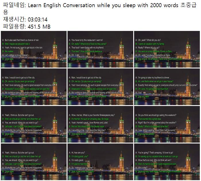 school 교육 Learn English Conversation Learn English Conversation while you sleep with 2000 words 초중급용 person 야오*** calendar_today 2026.04.11 visibility 3,820 다운로드 1개 파일 folder_zip Learn English Conversation while you sleep with 2000 words 초중급용.mp4 451 MB download