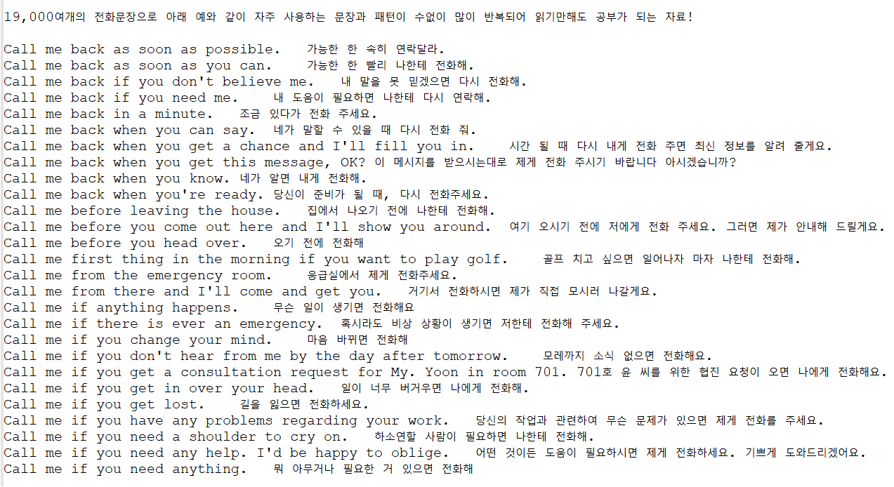 school 교육 전화영어 2만문장 전화영어(2만문장) person 가랑*** calendar_today 2026.04.11 visibility 3,057 다운로드 1개 파일 folder_zip 전화영어(2만문장).txt 2 MB download