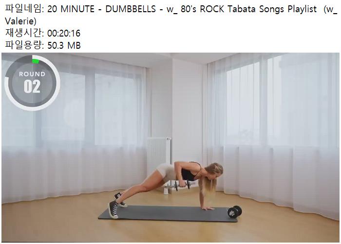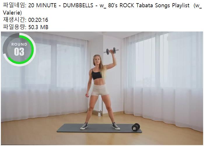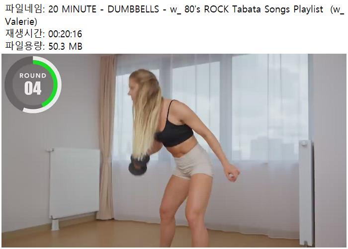school 교육 MINUTE DUMBBELLS ROCK 20 MINUTE - DUMBBELLS - w_ 80's ROCK Tabata Songs Playlist (w_ Valerie) person 남미*** calendar_today 2026.04.11 visibility 3,601 다운로드 1개 파일 folder_zip 20 MINUTE - DUMBBELLS - w_ 80's ROCK Tabata Songs Playlist (w_ Valerie).mp4 50 MB download