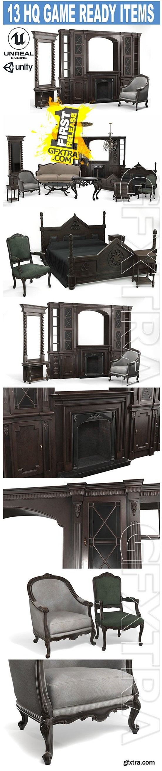 collection consists of 13 high quality furniture models of classical and gothic