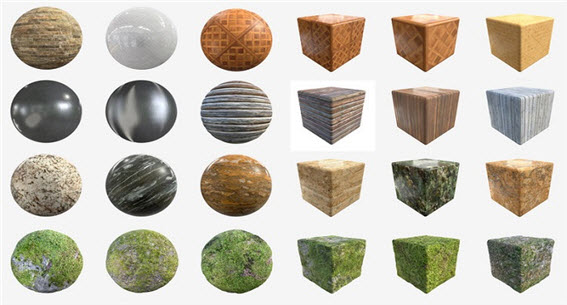 615 different textures containing every map (albedo, glossiness, reflection, ambient occlusion, displacement and normal) for all of them in sizes up to 8K.