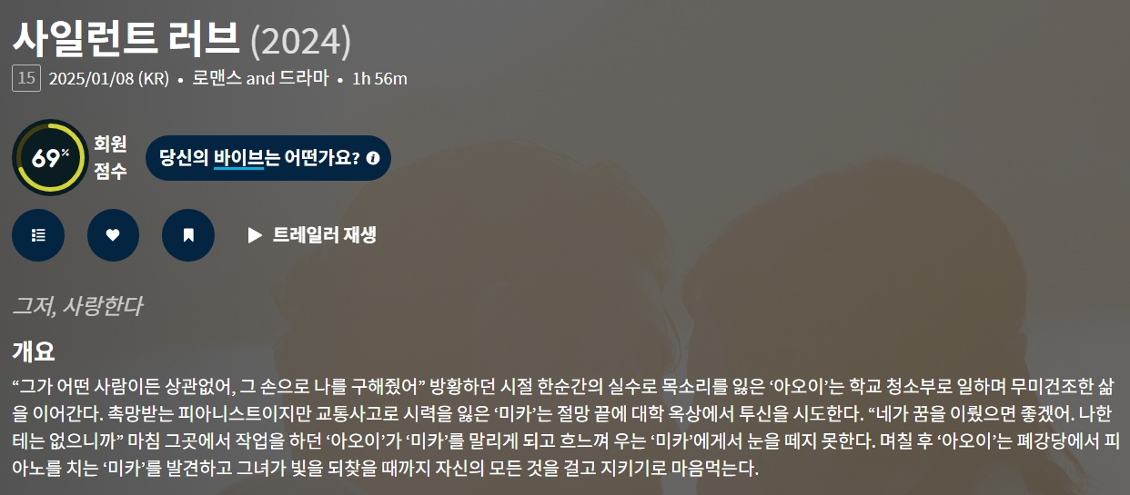 movie 영화 사일런트 러브 그저 사일런트 러브 "그저, 사랑한다. 말로 내뱉지 못해도 내 온몸이 너를 향해 외치고 있어." person gg*** calendar_today 2026.04.11 visibility 5,291 다운로드 1개 파일 folder_zip 사일런트 러브.mkv 2.1 GB download