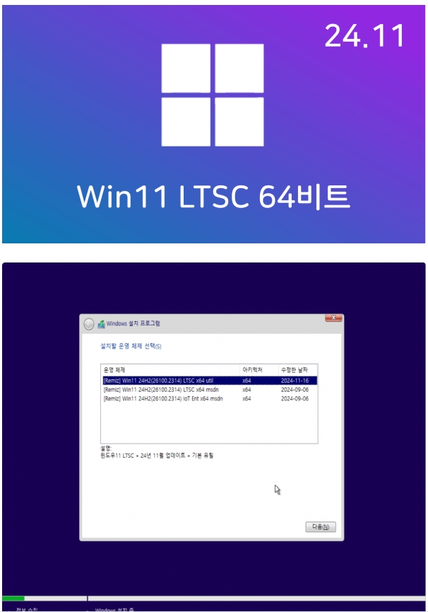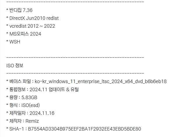 build 유틸 ■■ NEW 11월 ■■ [NEW][11월] 윈도우11 24H2 LTSC 64비트 (모든 플랫폼 용) ■■ person 썬뮤*** calendar_today 2026.04.11 visibility 5,530 다운로드 1개 파일 folder_zip Win11_24H2(26100.2314)_LTSC_3in1_x64_Remiz_24.11.16.iso 5.8 GB download