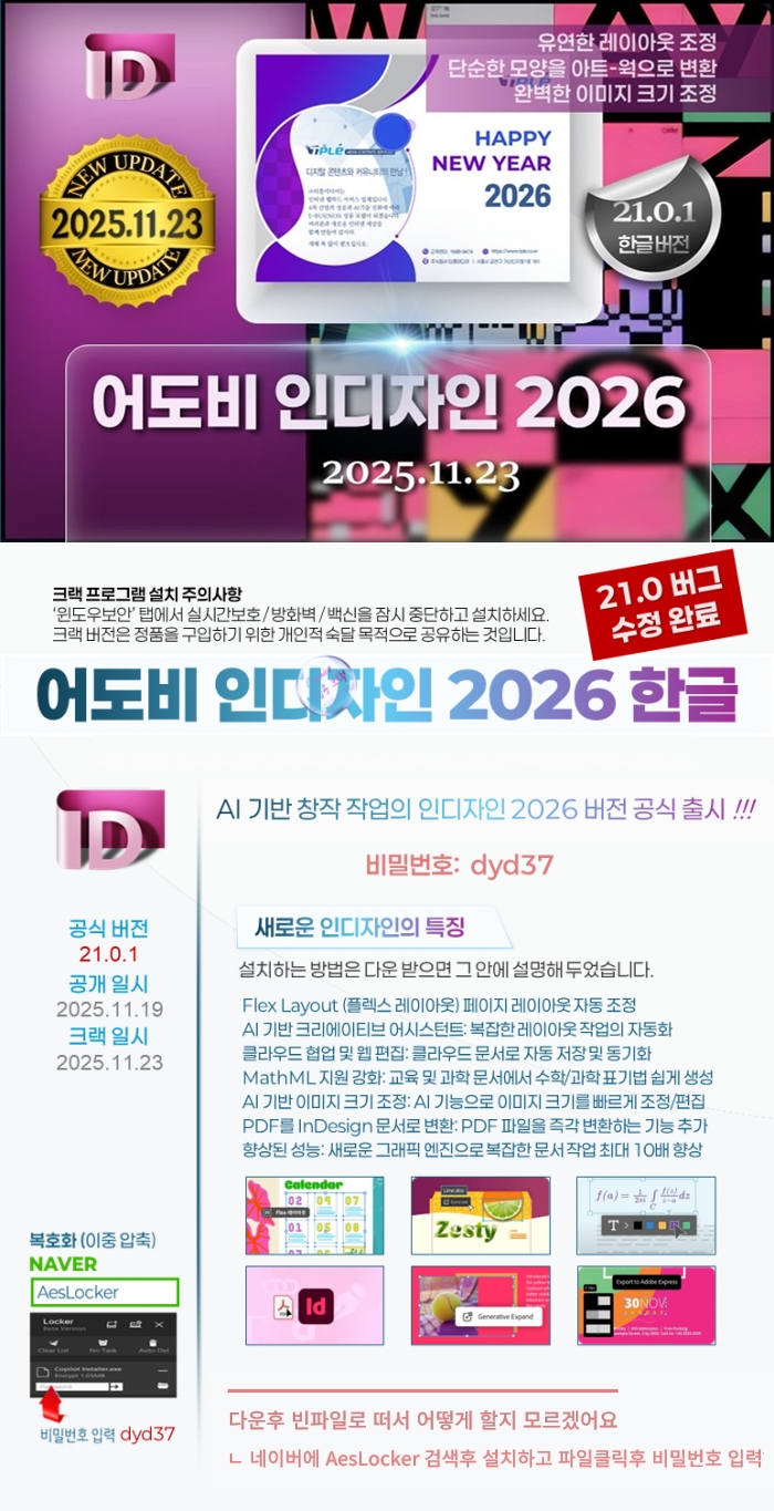 build 유틸 26년04월정품 NEW 어도비 [26년04월정품] [NEW] 어도비 인디자인 2026 ver21.02 최신한글업뎃버젼 person 라이*** calendar_today 2026.04.11 visibility 3,143 다운로드 1개 파일 folder_zip Adobe InDesign 2026 v21.0.2 KO-KR.zip.Lock 1.5 GB download