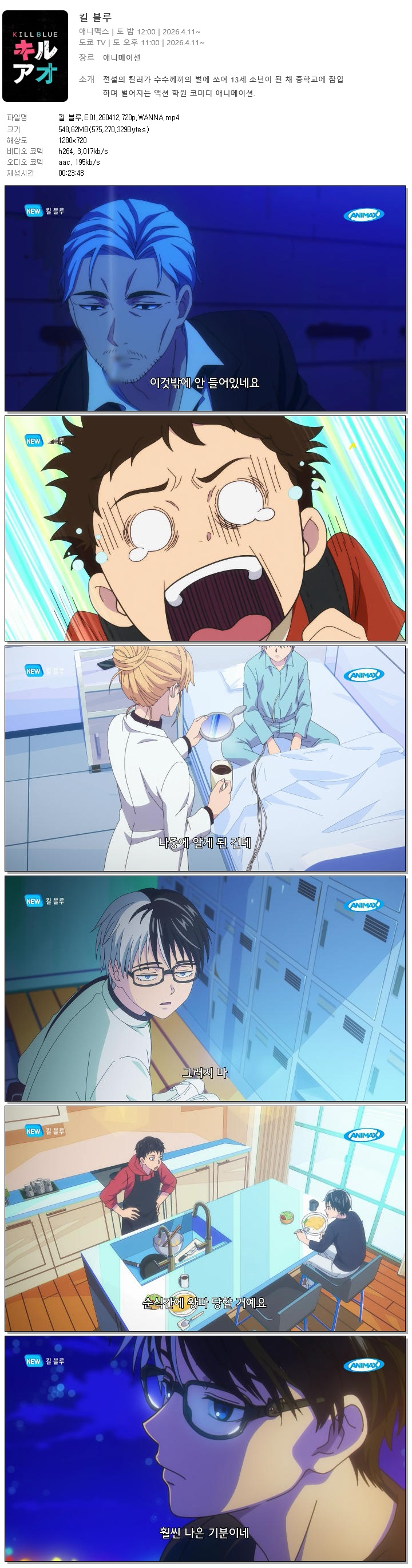 auto_awesome 애니 블루 E01 WANNA 킬 블루.E01.260412.720p.WANNA person 바오*** calendar_today 2026.04.11 visibility 5,929 다운로드 1개 파일 folder_zip 킬 블루.E01.260412.720p.WANNA.mp4 549 MB download